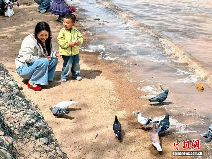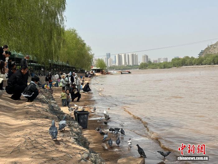 4月23日,气呼呼暖渐温的黄河兰州段迎去秋游暖潮,坐缆车、趁速艇、喂鸽子、感受羊皮筏子、趁坐黄河巴士等1系列黄河秋游名目吸收乘客。图为乘客正在黄河边玩耍。冯志军 摄