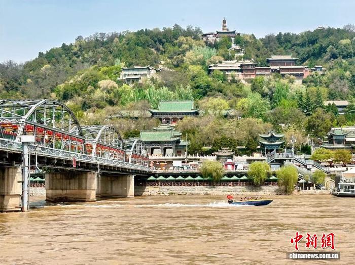 4月23日,气呼呼暖渐温的黄河兰州段迎去秋游暖潮,坐缆车、趁速艇、喂鸽子、领会羊皮筏子、趁坐黄河巴士等1系列黄河秋游名目吸收旅客。图为黄河速艇穿梭兰州中山桥。冯志军 摄